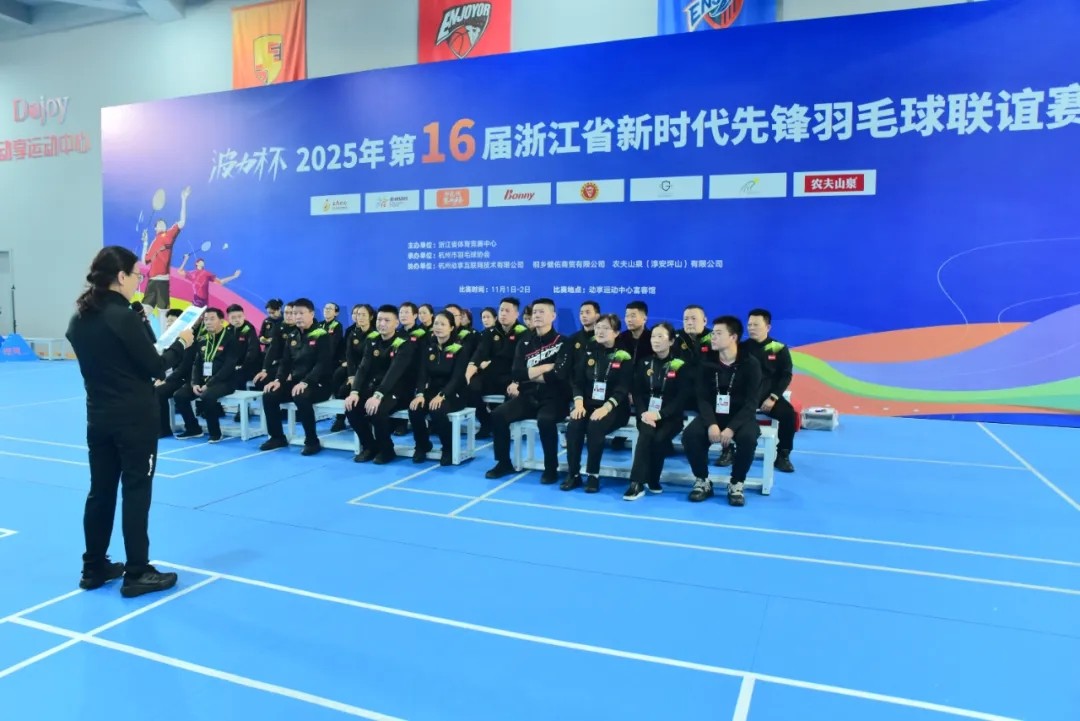 2025年11月1日至2日,2025年“波力杯”第十六届浙江省新时代先锋羽毛球联谊赛在动享运动中心富春馆成功举办。这场由浙江省体育竞赛中心主办,杭州动享互联网技术有限公司、桐乡健佑商贸有限公司、农夫山泉(淳安坪山)有限公司协办,杭州市羽毛球协会承办的羽毛球盛宴,吸引了省内各单位众多羽毛球爱好者热情参与,赛场上精彩纷呈,高潮迭起。