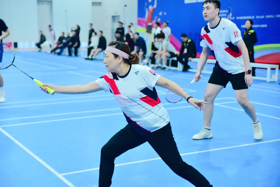 团体赛设置厅级组、处级组,比赛现场,各参赛队伍以球会友,队员们身手敏捷,灵活运用各种战术,将高远球、劈杀、吊球等技巧展现得淋漓尽致。赛场对决紧张激烈,每位队员全神贯注、奋力拼搏,展现了团结一心、积极向上的精神风貌。
